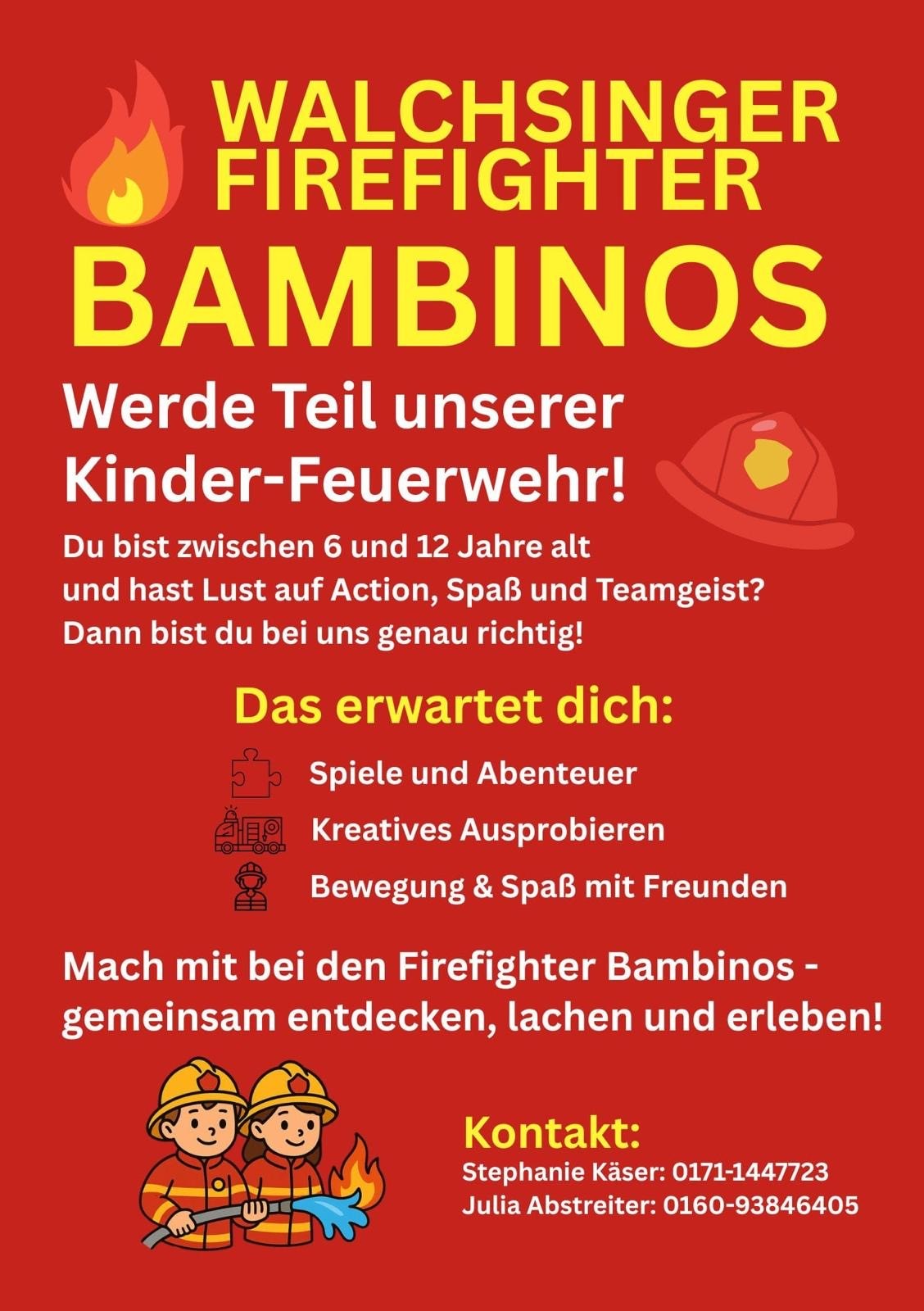 NEU: DIE WALCHSINGER FIREFIGHTER BAMBINOS! Erster Termin: 07.03.2026 um 14:30 Uhr im Feuerwehrhaus